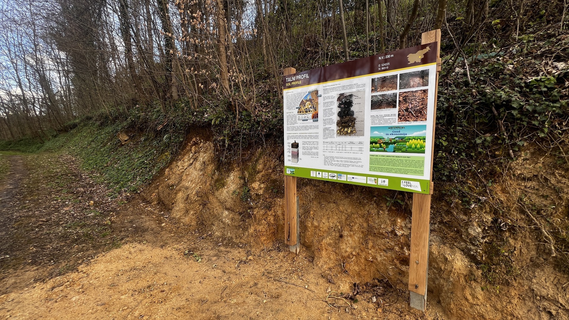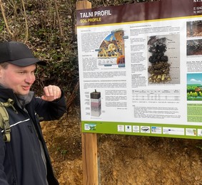 17.marca pa je projekt zaživel tudi na terenu. Peter Horvat, mladi raziskovalec z Oddelka za gozdno ekologijo na GIS, je v Sevnici, ob učni poti Gozd je kultura, ki vodi proti sevniškemu gradu, predstavil novo interpretacijsko tablo o gozdnih tleh. Njena vsebina obiskovalcem na poljuden in razumljiv način približa pomen tal v gozdnem prostoru ter spodbuja k razmisleku o njihovem varovanju. S tem sodelavci projekta SOIL:OIA nadaljujemo z ozaveščanjem javnosti in približevanjem znanstvenih spoznanj širši skupnosti.